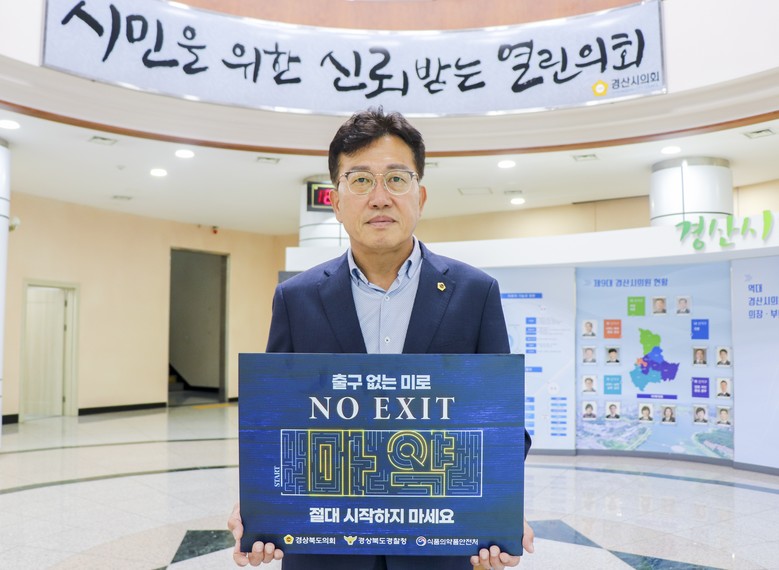 [경북 세계타임즈=한성국 기자] 경북도의회 농수산위원회 이철식 부위원장(경산)은 7월 11일 마약예방 ‘노엑시트(출구 없음)’ 릴레이 캠페인에 동참했다.