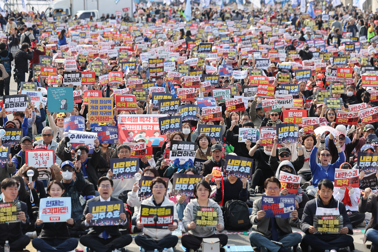 대국본 집회로 광화문광장에서 대한문 일대까지 세종대로 전 차로가 통제됐다. 집회 참가자들은 '윤석열 즉각 복귀', '국회 해산' 등이 적힌 손팻말과 태극기, 성조기를 들고 "탄핵 각하 8대0", "윤석열 대통령" 등의 구호를 외쳤다.무대에 올라선 국민의힘 윤상현 의원은 "민주당의 입법 독재를 견제할 수 있는 유일한 길은 탄핵 각하"라며 "각하만이 나라를 살리고 법치주의를 소생시킬 길"이라고 말했다.