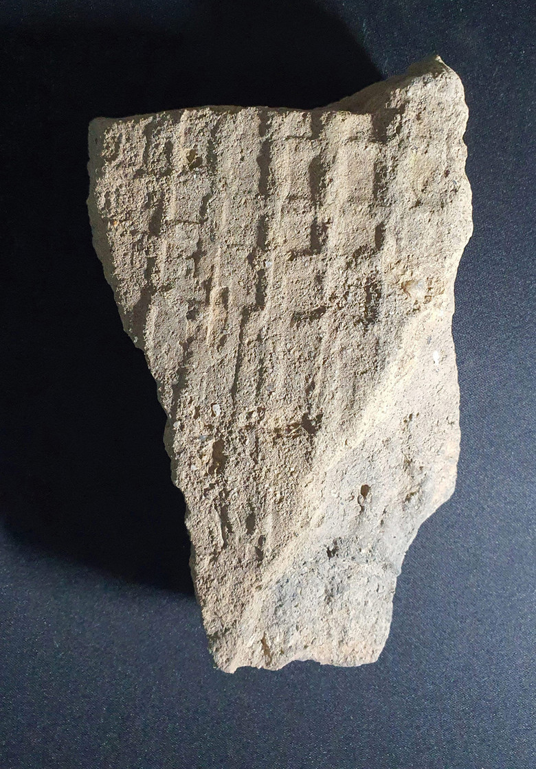 정연한 사격자문의 이 평 와편은 태토가 고우며 모래가 많이 섞이지 않았다. 흡사 김포 문수산성, 고양시 고봉산성, 포천 반월성. 연천 고모루성 등 고구려 성지에서 찾은 사격자문과 흡사했다. 특히 국립중앙박물관에 소장 된 평양근교 출토의 격자문 적색 평와를 닮고 있다.