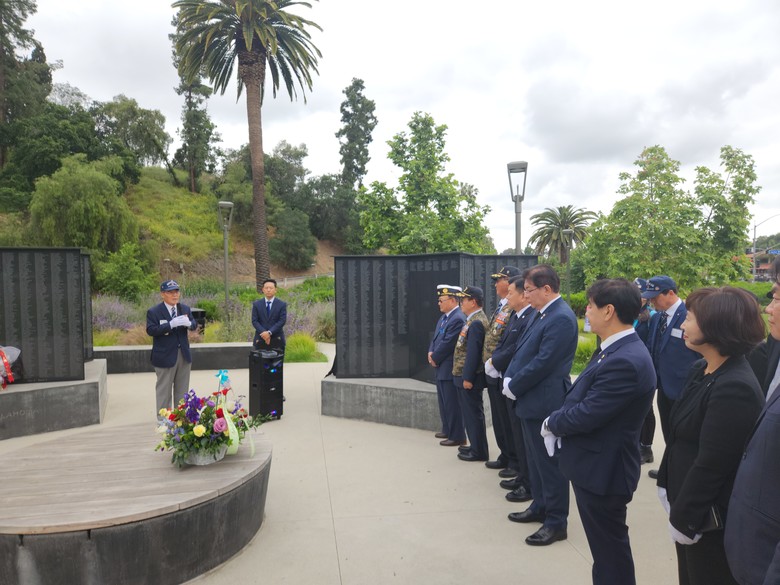 참배 일정에 동행한 오렌지카운티 재향군인회 박굉정 미남서부지회장은 “많은 동포께서 협조해주신 덕분에 이곳 기념비가 우리나라와 미국의 우호 관계의 상징이 되었다”고 말했다.
