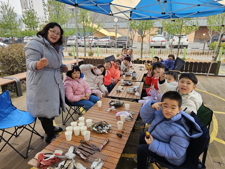 특히 이번 ‘아나바다마음나눔장터’가 더욱 행복하고 특별했던 이유는 맛있는 먹거리를 제공하는 달콤·따듯 간식부스를 운영한 점이다. 실외 캠핑영역에서 교직원들의 지원으로 숯불에 고구마와 치즈, 마시멜로우를 구워 먹기도 하고 원장선생님께서 타 주신 따듯한 핫초코를 함께 나눠 마시며 나눔의 기쁨이 두 배가 되었다. 만5세 유아는 “내가 더 이상 사용하지 않는 장난감을 친구가 기뻐하며 사 가는 모습을 보니 좋았다.”만3세 유아는 “바깥에서 간식을 먹으니 좋았다. 매일 먹고 싶은 맛이다.”라고 이야기 하는 등 행복 가득한 모습이었다.