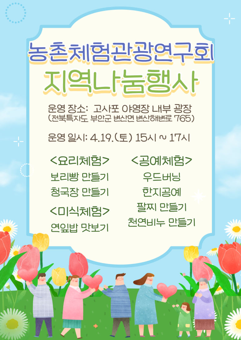 채명심 회장은 “농촌의 매력을 널리 알리고 지역 주민과 관광객이 함께 어울릴 수 있는 소통의 장을 마련하는 의미 있는 행사”라며 “앞으로도 지역 농촌 자원을 활용한 다양한 프로그램 개발과 활동에 힘쓰겠다”고 말했다.