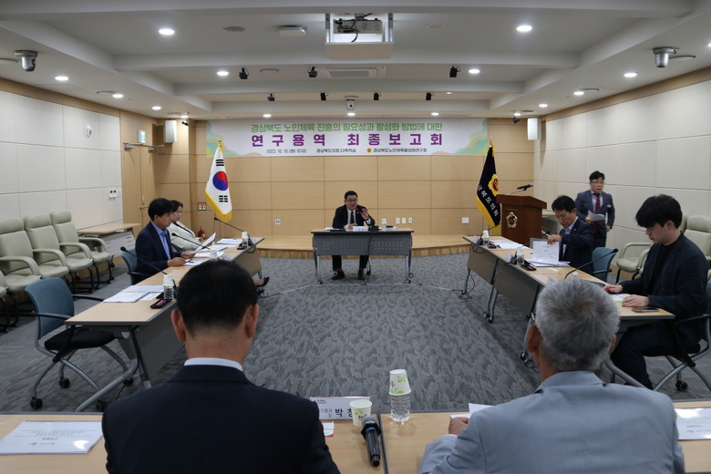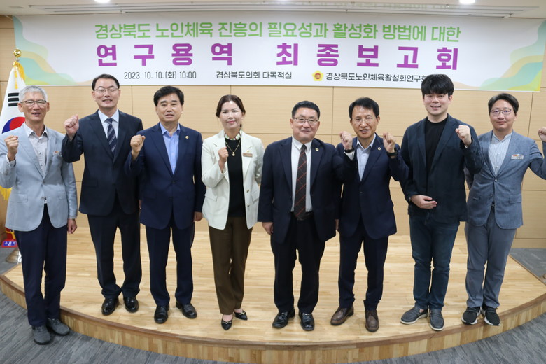 [경북 세계타임즈=한성국 기자] 경북도의회 「경상북도노인체육활성화연구회」(대표 임병하 의원)는 10일(화) 도의회 다목적실에서 “경상북도 노인체육 진흥의 필요성과 방법에 대한 연구 용역” 최종보고회를 개최했다.