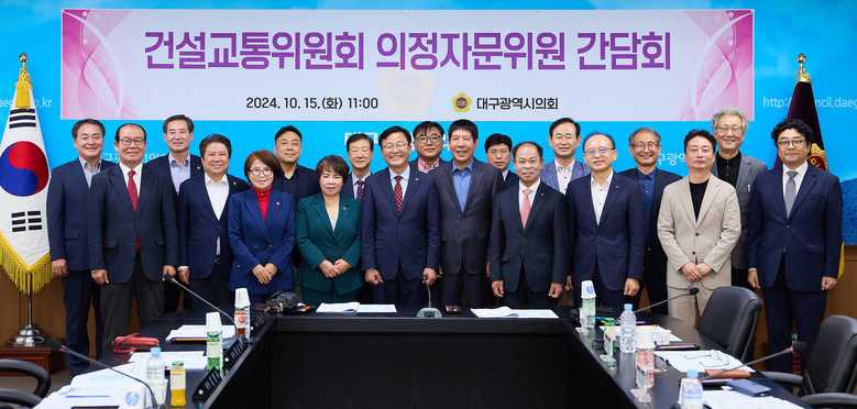 [대구 세계타임즈=한윤석 기자] 대구시의회 건설교통위원회(위원장 허시영)는 15일 시의회 2층 회의실에서 건설교통위원회 위원과 의정자문위원 등 18명이 참석한 가운데 간담회를 개최했다.