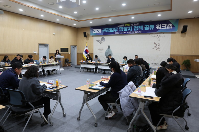 [고흥군 세계타임즈=우덕현 기자] 고흥군(군수 공영민)은 지난 29일 고흥분청문화박물관에서 관광업무 담당자 50명이 참석한 가운데 2026 관광업무 정책 공유 워크숍을 개최하고, 관광정책 추진 방향과 주요 현안 사업에 대한 공유 및 협업 방안을 논의했다고 밝혔다.