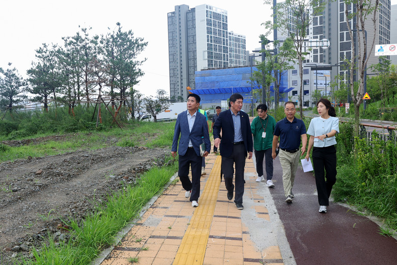 이날 현장 점검은 불안감을 호소하는 인근 주민과 학부모들의 의견을 반영해 이루어졌으며, 의원들은 ▲공정 현황 확인 ▲적기 개교 여부 ▲안전한 통학로 확보 방안 ▲어린이보호구역 연장 등을 집중 점검했다.