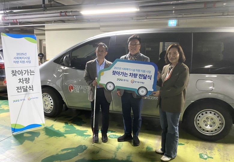 이번 행사는 ‘2025년 경기도 사회복지시설 차량 지원사업’의 일환으로 마련된 자리로, 이날 경기도시각장애인연합회 성남시지회(지회장 김화주)와 비쏘금보호작업장(시설장 백명진)에 각각 승합차 한 대씩이 전달됐다.