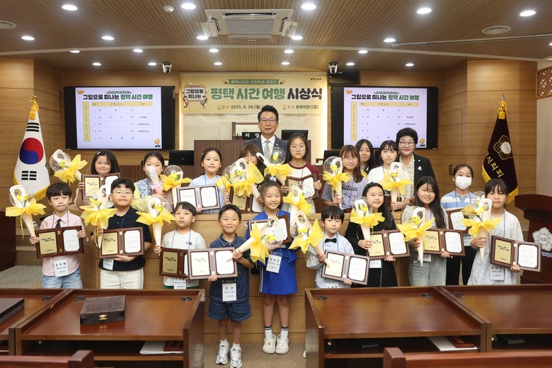 [평택시 세계타임즈=송민수 기자] 평택시의회(의장 강정구)는 지난 29일 평택시의회 본회의장(2층)에서 평택시 초등학생 공모전 「그림으로 떠나는 평택 시간여행」 시상식을 개최했다.