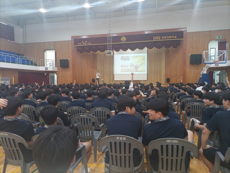 [광주 세계타임즈=손권일 기자] 정광고등학교가 지난 18일 국제환경운동실천가 조승환 대표를 초청해 학생 및 교직원 400여 명을 대상으로 강연을 열었다.