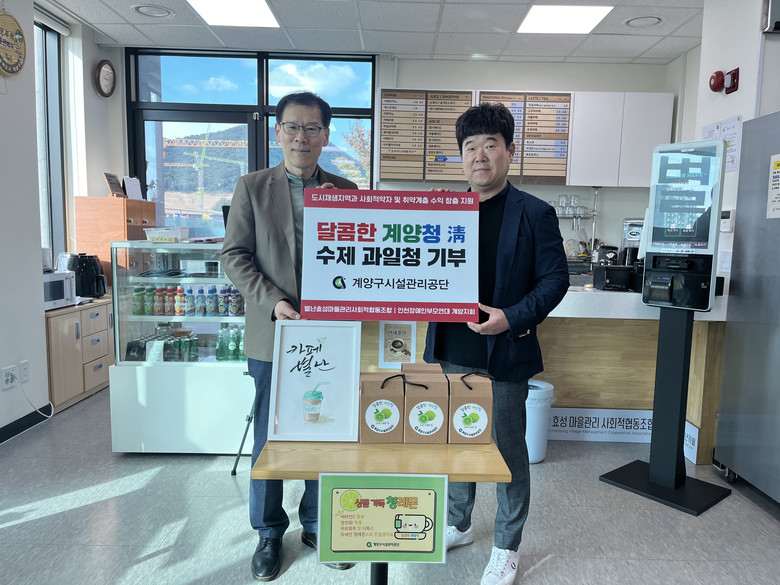 [계양구 세계타임즈=심하린 기자] 인천광역시계양구시설관리공단(이사장 박성민)은 지역 내 비영리단체의 자립 기반 강화와 사회적 약자 지원을 위해 ‘달콤한 계양청(淸)’ 기부 행사를 추진했다.