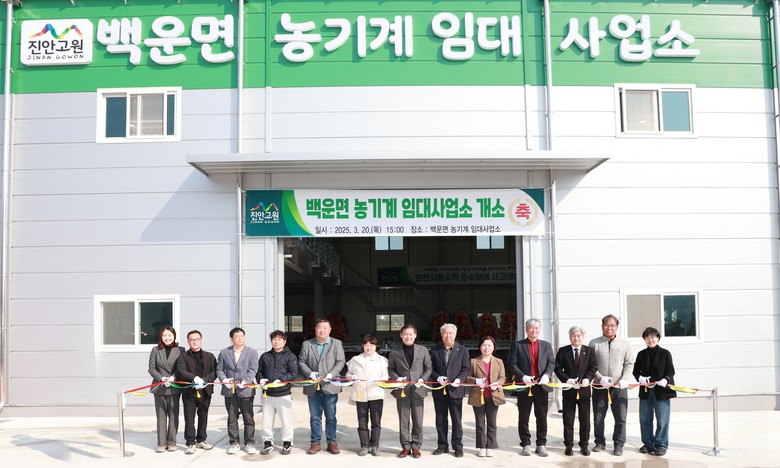[세계타임즈=진안군 김서주 기자] 진안군은 20일 백운면 임진로 1283-19에 위치한 백운 농기계 임대사업소에서 개소식을 개최했다. 이 날 행사에는 전춘성 진안군수를 비롯해 군 관계자, 지역 농업인 및 관련 기관 대표들이 참석해 새로운 임대사업소의 개소를 축하했다.