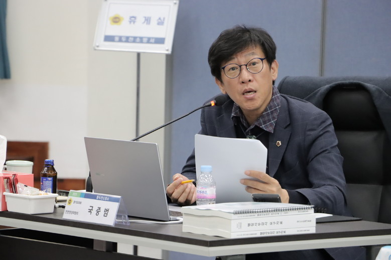 [경기도 세계타임즈=송민수 기자] 경기도의회 안전행정위원회 국중범 의원(더불어민주당, 성남4)은 11일 일산소방서에서 진행된 2025년 경기도의회 행정사무감사에서 소방공무원의 근무복 세탁 지원 부재 문제와 의용소방대 신규 대원 확보의 어려움을 지적하며 제도 개선을 촉구했다.