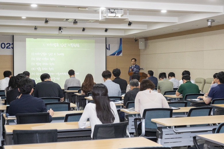 이날 교육에서는 자치법규 입안실무 부터 법규 해석, 운영 등 법제전반에 대하여 다루었으며, 강사진은 실무경험이 많은 법제처 전문가로 구성했다.