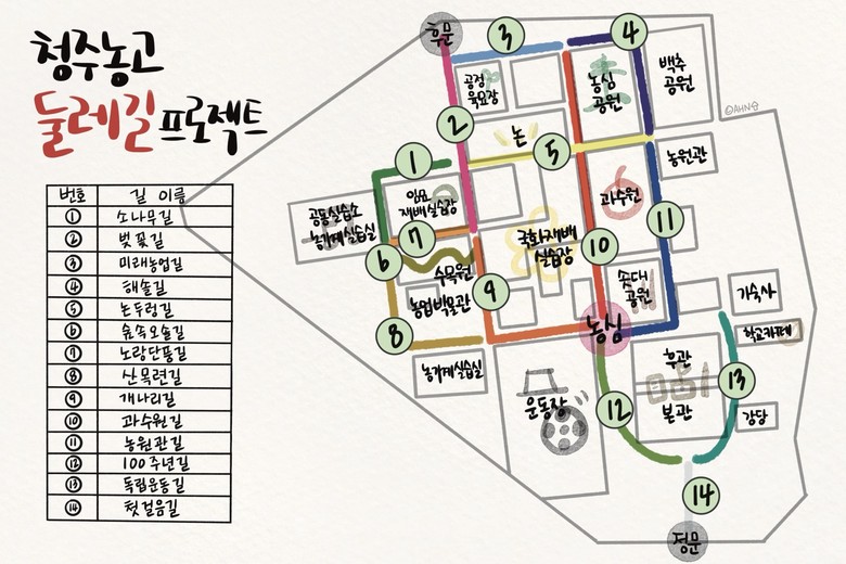 [충북 세계타임즈=이현진 기자] 청주농업고등학교(교장 고종현)가 7일(금), 약 21만㎡의 대형 캠퍼스를 활용하여 새로운 둘레길 프로젝트를 실시하였다고 밝혔다.