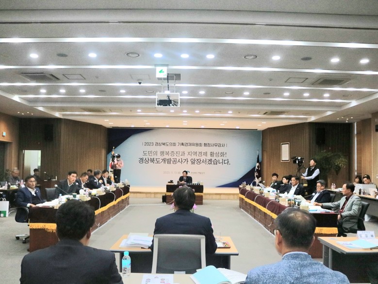경북개발공사, 공기업의 역할 및 자체사업 비중 높일 것 주문 - [경북 세계타임즈=한윤석 기자] 경상북도의회 기획경제위원회(위원장 이춘우)는 11월 13일 경북바이오산업연구원, 경북개발공사에 대한 2023년도 행정사무감사를 실시했다.