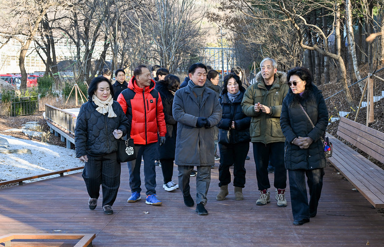 [의정부시 세계타임즈=송민수 기자] 의정부시(시장 김동근)는 2026년 병오년 새해를 맞아 1월 8일 녹지 인프라 확충을 위한 주요 사업 대상지를 현장 점검했다. 점검 대상지는 ▲장암동 실외정원 ▲용현산업단지 완충녹지 산책로 및 가로숲길 조성 사업지 ▲민락동 감성쉼터 등이다. 이번 점검은 도심 속 쉼터와 실외정원 확충, 안전한 보행환경 조성, 산림 명소 발굴 등 녹지 인프라 조성 사업의 추진 현황을 점검하고, 시민들이 일상에서 녹지 공간을 보다 쉽게 이용할 수 있도록 추진 중인 ‘도시숲 프로젝트’의 사업 방향과 현장 여건을 확인하기 위해 진행됐다.