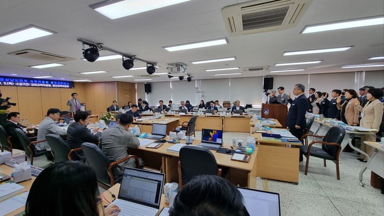 [경남 세계타임즈=최성룡 기자] 경상남도의회 교육위원회가 제409회 정례회 기간인 9일 김해교육지원청에서 김해·양산 2개 교육지원청을 대상으로 행정사무감사를 벌였다. 이날 감사에서는 장애인표준사업장 물품 및 용역 구매 실적, 학교급식 음식물쓰레기 발생량, 양산지역 과밀학급 해소 및 생존수영 교육 관련 질의와 점검이 이뤄졌다.