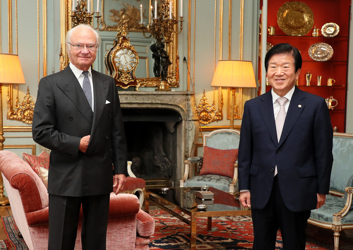 예방은 현지시간 오전 11시부터 11시 40분까지 40분간 이뤄졌으며 배석자 없이 구스타프 16세 국왕과 박병석 국회의장 단독으로 이뤄졌다.