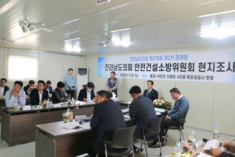 [전남 세계타임즈=우덕현 기자] 전라남도의회 안전건설소방위원회(위원장 이동현)는 제376회 제2차 정례회 기간 중 11월 1일, ‘벌교~낙안’ 지방도 공사 현장을 방문해 2023년 행정사무감사 현지조사를 실시했다