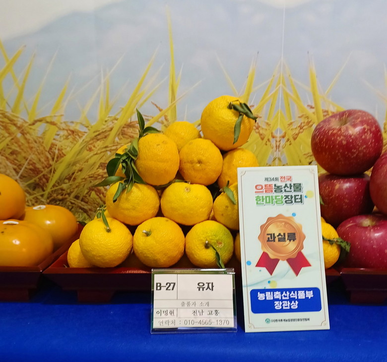 이번 대회에서 전남 고흥군 풍양면의 이명현 씨가 출품한 ‘고흥 유자’는 탁월한 품질과 향, 재배관리 기술 등에서 높은 평가를 받아 대회 최고상인 농림축산식품부장관상을 수상했다.