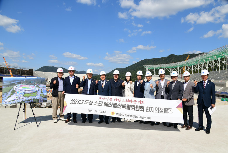먼저, 김해시 전국체전 주경기장 건설현장을 방문하여 김해시로부터 공사추진 현황을 보고받은 후 현장을 점검했다. 업무보고를 받은 예결위원들은 공사안전관리 철저, 주경기장 사후 활용방안 마련, 국비 추가 확보 등을 당부하였다. 또한 박성도 위원장(진주2, 국민의힘)은 “경남에서는 14년 만에 열리는 전국체전이니만큼 성공적으로 개최될 수 있도록 대회 준비에 만전을 기해 달라”고 말했다.