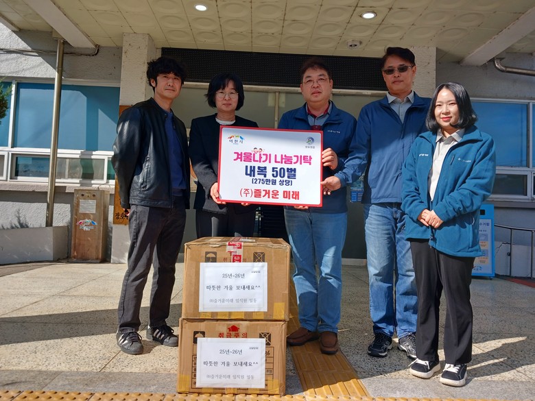[이천시 세계타임즈=송민수 기자] ㈜즐거운 미래(대표 류호진)에서 10월 22일(수)에 장호원읍행정복지센터에 따뜻한 겨울나기를 위한 내복 50벌(275만원 상당)을 전달했다.