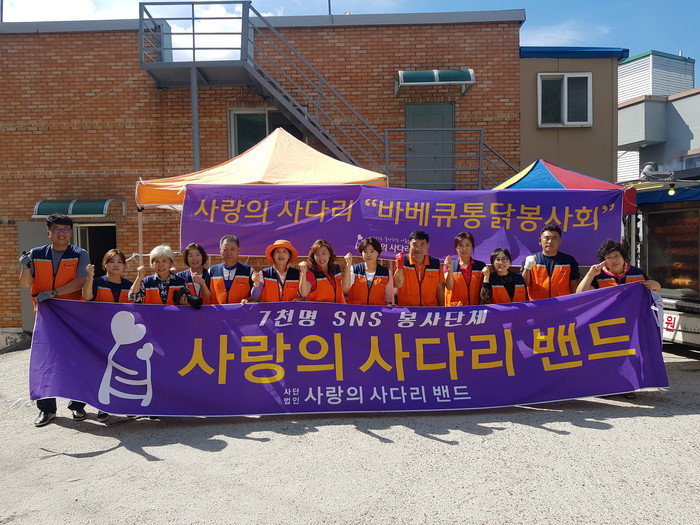[대전=세계타임즈 이장성 기자] 추석명절을 앞두고 7천명 SNS 대전시 봉사단체 사랑의 사다리 밴드(리더 이정제)는 12일 대덕구 비래지역아동센터(센터장 김용미)에서 대덕구 관내 14곳의 지역아동센터 410명의 아이들에게 바베큐통닭 210마리를 전달하면서 우리 사회의 따뜻한 사랑을 나누었다.