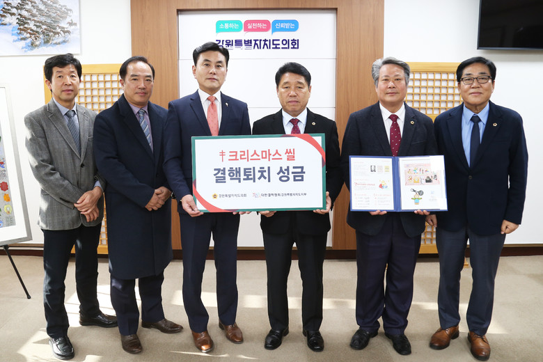 이번 증정식은 항 결핵운동을 상징하는 크리스마스 씰 모금을 통해 결핵퇴치사업에 대한 범도민적 관심을 높이기 위해 마련된 자리로, 강원특별자치도의회 권혁열 의장, 한창수 부의장, 심영곤 운영위원장과 대한결핵협회 강원특별자치도지부 한중일 회장, 진광렬 본부장 등이 참석하였다.