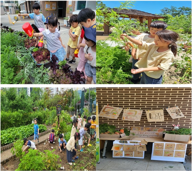 텃밭 작물은 나눔의 매개가 되기도 했다. 소방대피훈련 날에는 아이들은 정성껏 키운 오이를 소방관에게 전하며 감사의 마음을 표현했고, 하원 시간에는 학부모에게 ‘따뜻한 말 한마디’ 편지를 받고 수확한 당근을 판매하는 ‘당근마켓’이 열리기도 했다.