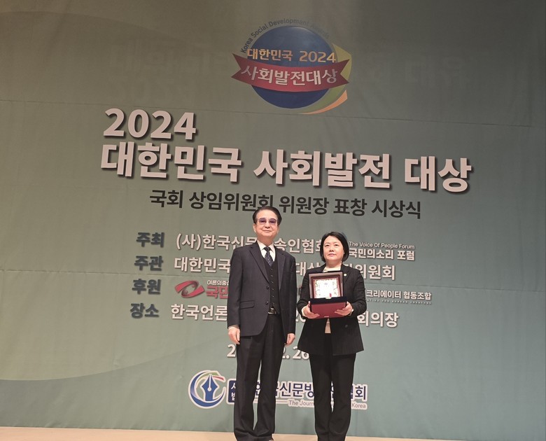 [강원도 세계타임즈=김민석 기자] 강원특별자치도의회 박윤미 부의장(더불어민주당, 원주)은 12월 26일(목) 2024년 대한민국사회발전대상 지방자치의정부문 대상을 수상하였다고 밝혔다.
