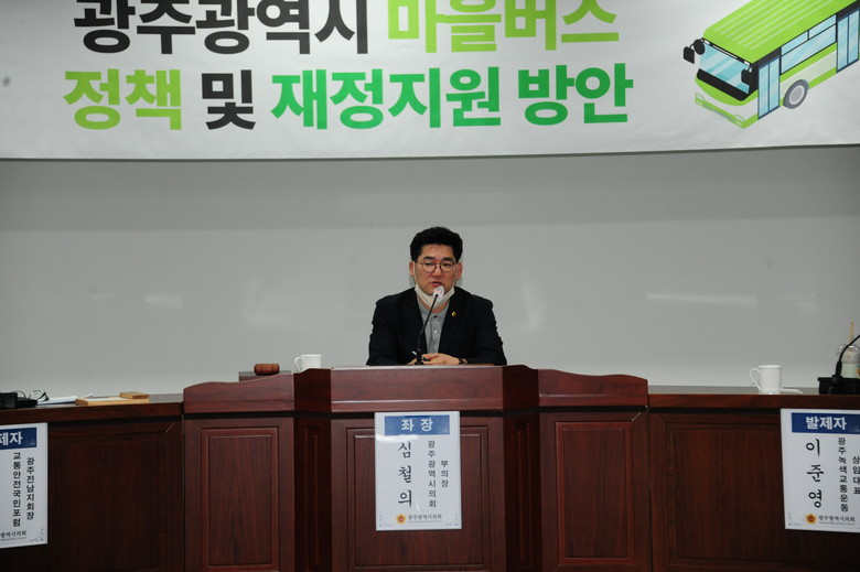 [광주 세계타임즈=손권일 기자] 광주광역시의회 심철의 부의장이 30일 시의회에서 마을버스 정책 및 재정지원방안 마련을 위한 정책토론회를 개최했다.