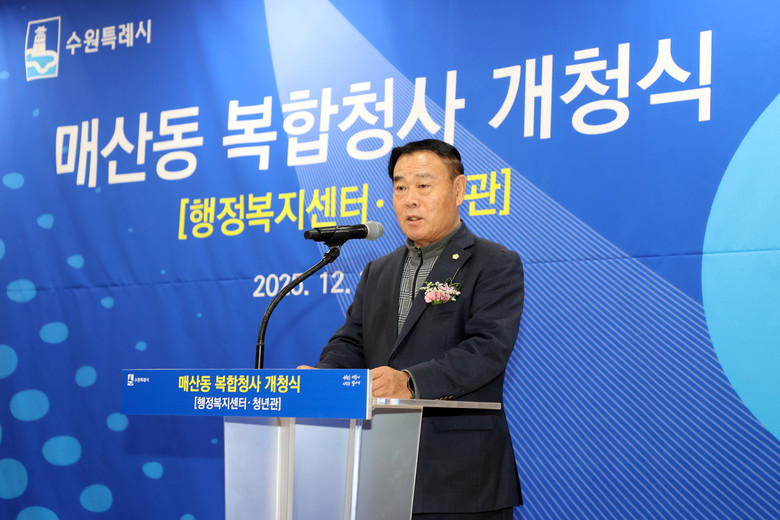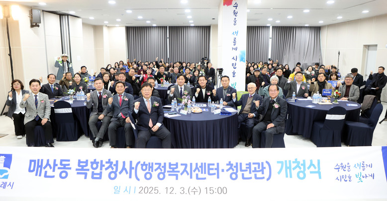 [수원시 세계타임즈=송민수 기자] 수원특례시의회(의장 이재식)는 3일(수),‘매산동 복합청사(행정복지센터 및 청년관) 통합 개청식’에 참석해 스마트한 도시 서비스와 주민 편의를 한층 높일 새로운 청사의 개청을 축하했다.