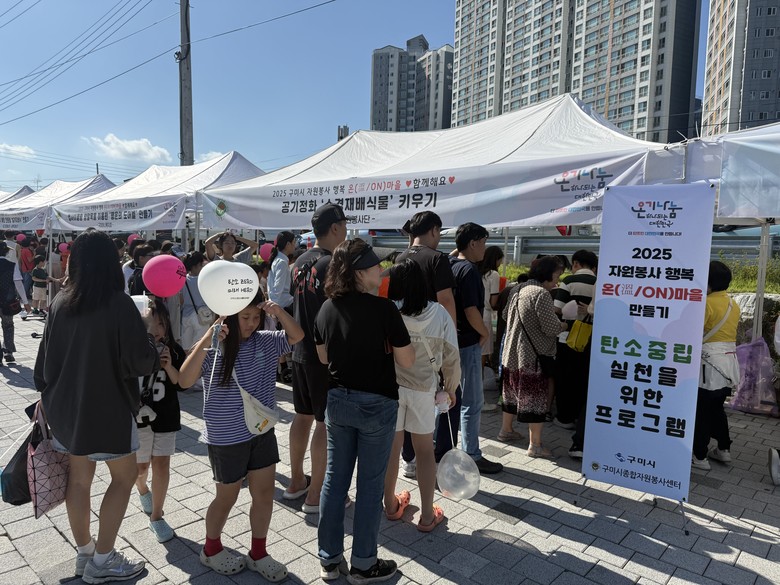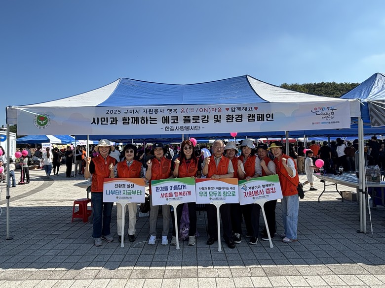 현장에서는 구미시 자원봉사 캐릭터 ‘자봉이’를 활용한 굿즈 만들기를 비롯해 △에코 플로깅 △공기정화 수경재배 식물키우기 △친환경 설거지 비누 만들기 △양말목 업사이클링 △솜사탕·팝콘 나눔 △손 마사지 재능봉사 등 다양한 프로그램이 운영됐다. 이를 통해 생활 속 환경 보호의 중요성을 알리고, 미래 세대를 위한 건강한 마을 환경 조성에도 힘을 보탰다.