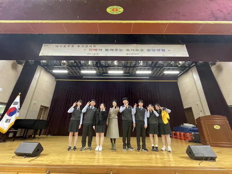[대구 세계타임즈=한윤석 기자] 대구동부중학교(교장 최정애)는 지난 3월 26일(화) 15시 강당에서 3학년 선배들이 주축이 되어 중학교 1학년 전체 학생 286명을 대상으로 한 ‘토크 콘서트’를 실시하였다.