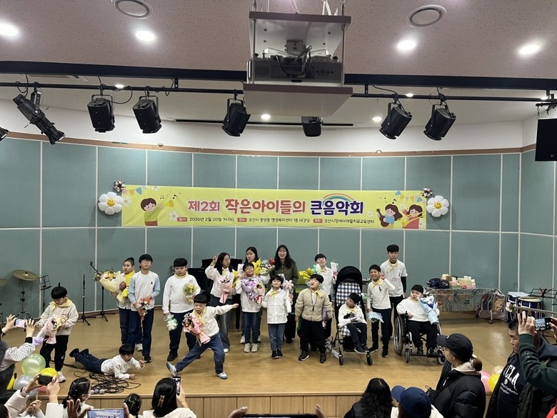 [오산시 세계타임즈=송민수 기자] 오산시장애아재활치료교육센터(센터장 김정훈)는 지난 20일 중앙동행정복지센터 대강당에서 센터 이용 아동과 보호자가 참석한 가운데 ‘제2회 작은 아이들의 큰 음악회’를 개최했다고 밝혔다.