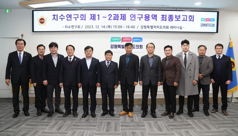 - 한강수계관리기금 지원사업 성과 분석·개선 방안 등 주요 사항 논의 [세계타임즈=강원도 김민석 기자] 강원특별자치도의회 의원연구단체인 ‘치수연구회’(회장, 윤길로 의원)는 12월 14일(목) 오후 3시 도의회 세미나실에서 ‘한강수계 기초현황 및 오염발생 현황, 수질개선에 관한 관리비용 연구용역’과 ‘한강수계기금 지원사업의 성과 분석 및 개선방안 연구용역’ 2개 과제에 대한 최종보고회를 개최하였다.