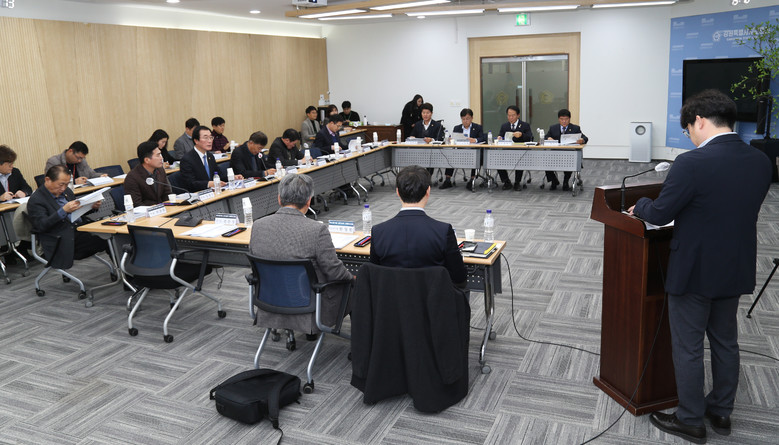 이날 보고회는 치수연구회 소속 도의원을 비롯한 연구용역 수행기관인 (재)국제도시물정보과학연구원 변성준 책임연구원, 강원연구원 한영한 선임 연구위원, 도의회 정책지원관 등이 참석 제1과제 ‘한강수계 기초현황 및 오염발생 현황, 수질개선에 관한 관리비용 연구용역’ 변성준 책임연구원, 제2과제 ‘한강수계기금 지원사업의 성과 분석 및 개선방안 연구용역’ 한영한 선임 연구위원의 연구과제를 발표하였고 연구과제에 대한 토론과 논의의 시간을 진행하였다.
