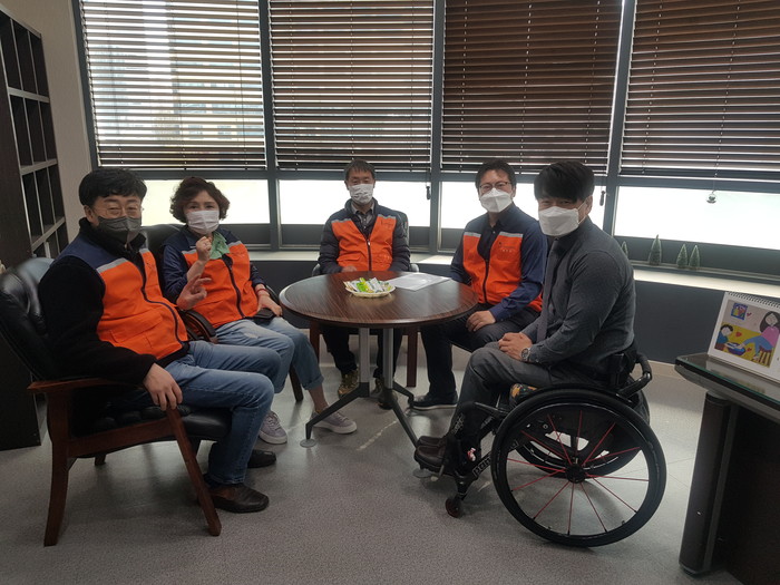 대전시지체장애인협회 서구지회 권준석 회장은 “오늘 사랑의 사다리 밴드와 오피스디포에서 일상생활에 필요한 휴지통을 지원해 주어서 큰 힘과 위안이 된다.”면서 감사함을 전했다.
