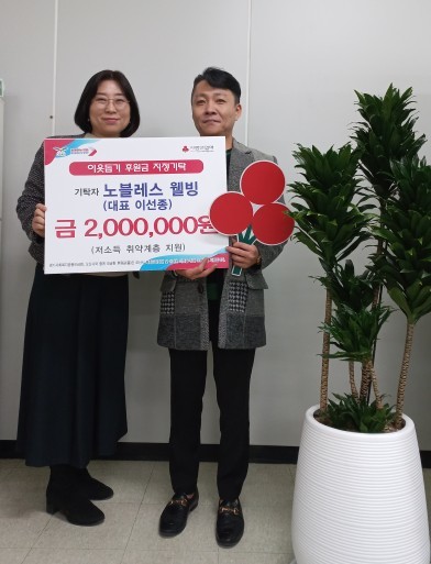 김희정 희망복지과장은 “모두가 어려운 시기에도 불구하고 뜻깊은 나눔을 실천해 주신 노블레스 웰빙에 깊이 감사드린다”며 “기탁해 주신 후원금이 도움이 필요한 이웃들에게 소중히 전달될 수 있도록 최선을 다하겠다”고 말했다.