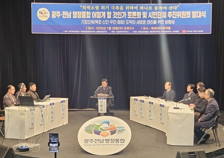 [전남 세계타임즈=우덕현 기자] 전라남도의회 최선국 의원(더불어민주당, 목포1)은 지난 1월 28일 목포 KBS 공개홀에서 열린 ‘전남ㆍ광주 행정통합 토론회’에 참석해 행정통합 논의가 단순한 행정구역 통합을 넘어 지역균형발전을 제도적으로 보장하는 방향으로 추진돼야 한다고 강조했다.