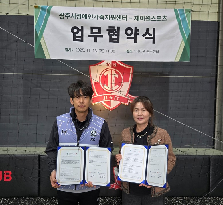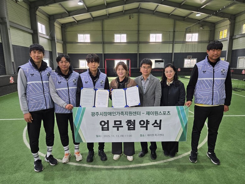 [광주시 세계타임즈=송민수 기자] 광주시장애인가족지원센터는 지난 13일 유소년 축구클럽 ‘제이원스포츠’와 ‘발달장애인의 신체활동 지원 및 가족 여가 활동 확대를 위한 업무협약(MOU)’을 체결했다.