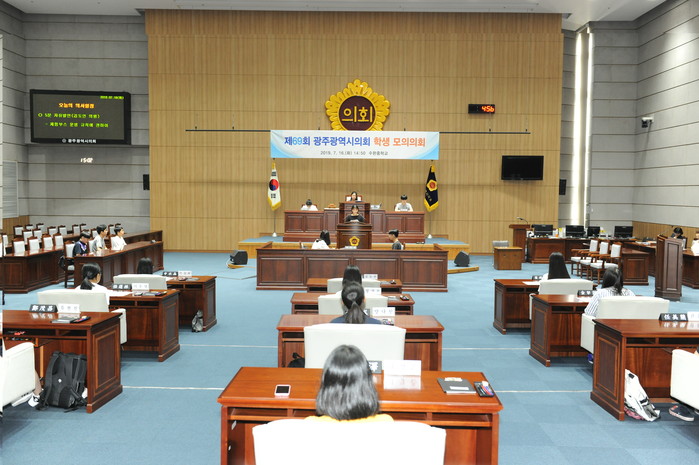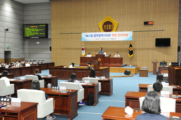 오늘 의장역을 맡은 김수연 학생은 “오늘 하루 광주시 의원이 되어 직접 의사 진행 과정에 참여하는 활동을 통해 민주적인 의사결정과정을 배울 수 있었다”며, “지방자치의 중요성에 대해 다시 한 번 생각해 보는 동시에 대화와 토론을 중시하는 민주시민으로서 한걸음 다가갈 수 있는 좋은 기회가 되었다”고 밝혔다.