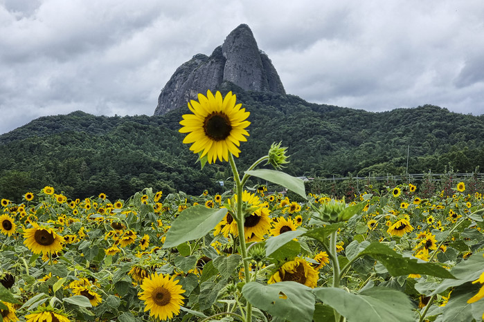 [진안=세계타임즈 임하영 기자] 진안군 농업기술센터 앞에 조성한 해바라기가 마이산과 어우러져 강렬한 풍경을 선사하고 있다.
