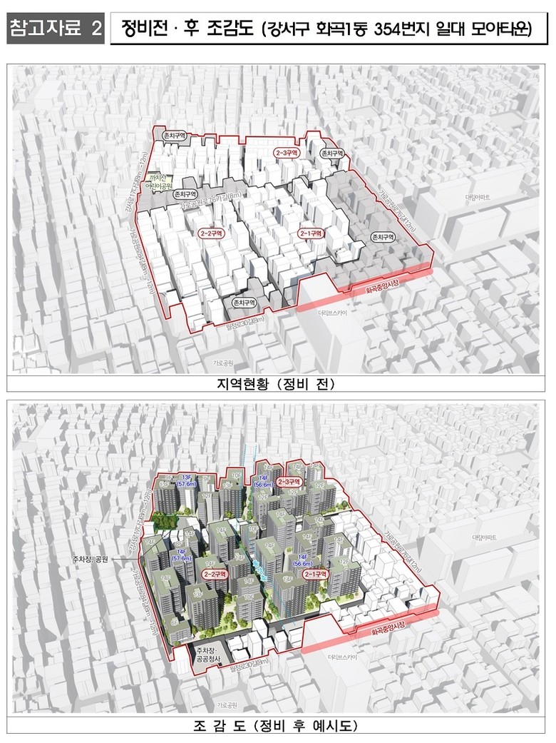 통과된 안건은 ▲강서구 화곡1동 354번지 일대 모아타운 ▲양천구 목3동 644-1번지 일대 모아타운으로, 사업추진 시 모아주택 총 2,606세대(임대 603세대 포함)가 공급될 예정이다.