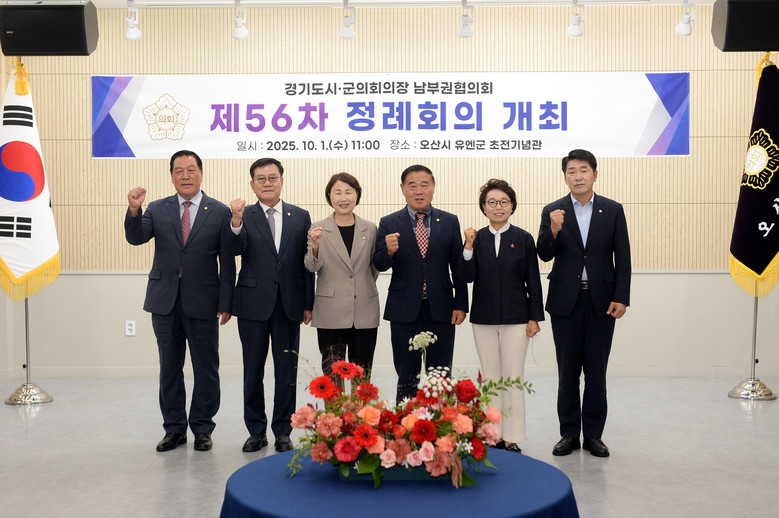 [오산시 세계타임즈=송민수 기자] 경기도시·군의회의장 남부권협의회가 1일 오산시의회 주관으로 오산 유엔군초전기념관에서 제56차 정례회의를 열었다.