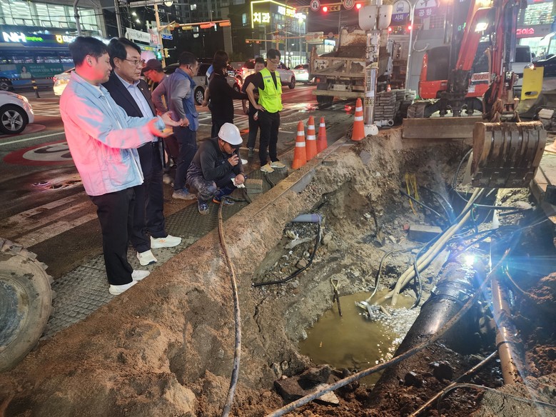 [남양주시 세계타임즈=송민수 기자] 조성대 남양주시의회 의장이 지난 1일 저녁 평내동 일대 노후 상수도관 교체 현장을 방문해 단수로 인한 주민 불편이 최소화될 수 있도록 신속한 복구를 주문했다.