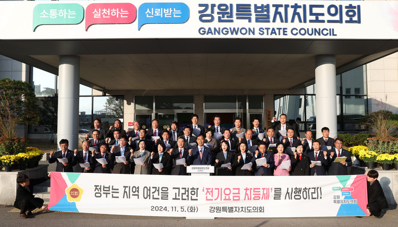 강원특별자치도의회 의원들은 ‘전기요금 차등제’가 본래의 취지대로 시행될 것을 촉구하며, △전력 생산량과 자급률, 지역 여건을 고려해 제대로 된 ‘전기요금 차등제’ 시행 △공정하고 객관적인 전기요금 산정을 위한 명확하고 세분화된 기준 마련 △동해안 발전소 정상 운영을 위한 송전선로 확충 및 근본적인 대책 마련을 강조했다.