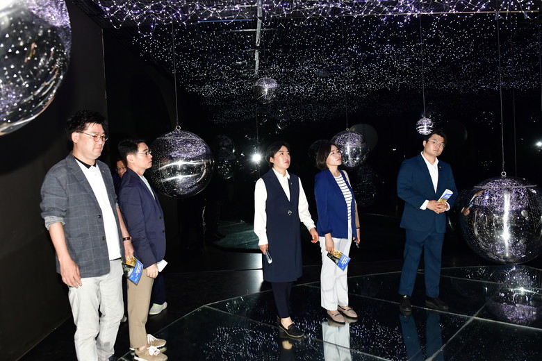 이날 의원들은 관계자로부터 전시프로그램, 전시진행상황, 애로사항 등에 대해 보고를 받고, 관람객 만족도와 개선사항 등에 대해 점검하였다.