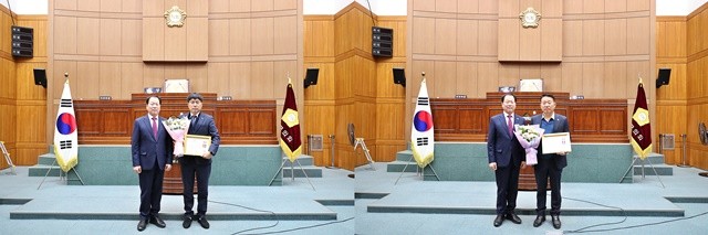 [부안군 세계타임즈 = 강옥선 기자] 부안군의회 박태수 산업건설위원장과 박병래 예결위원장이 지방의정 및 지역사회 발전에 기여한 공로를 인정받아 전북시군의회의장협의회에서 주관하는 ‘지방의정봉사상’을 받았다.