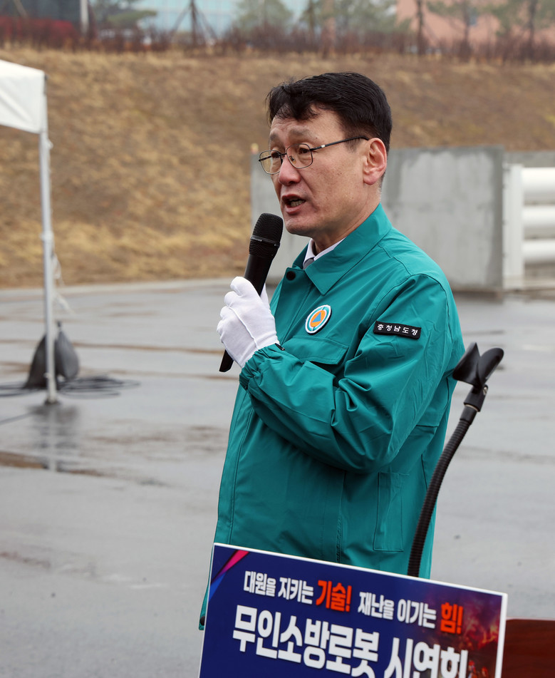 도 소방본부는 18일 청양에 위치한 충청소방학교에서 홍종완 도 행정부지사, 도와 시군 소방공무원 등 200여 명이 참석한 가운데 무인소방로봇 시연회를 개최했다.